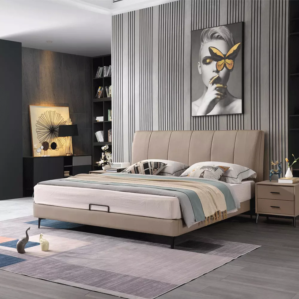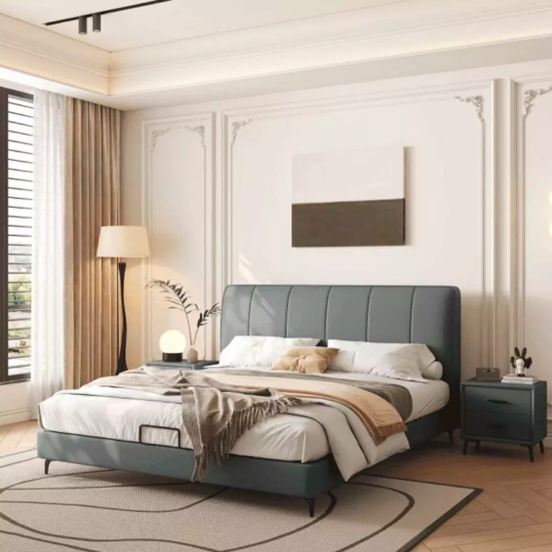 Specifications: Top-grain cowhide upholstery + box spring: bed frame + solid wood multi-layer full-coverage bed slats